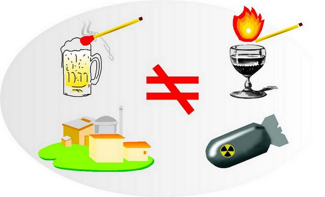 雖然原子彈和核反應(yīng)堆都以鈾為原料,但兩者對(duì)純度要求完全不同:核彈要求鈾純度在90%以上,而核電站核燃料鈾純度只有3%左右,如此低的濃度根本不能發(fā)生爆炸,正如烈度白酒可以點(diǎn)燃,啤酒卻不能點(diǎn)燃的道理一樣。核電站多年的發(fā)展歷史上,從未發(fā)生過核爆炸:切爾諾貝利核事故是蒸汽爆炸,日本福島第一核電站是氫氣爆炸,都不是核爆炸。