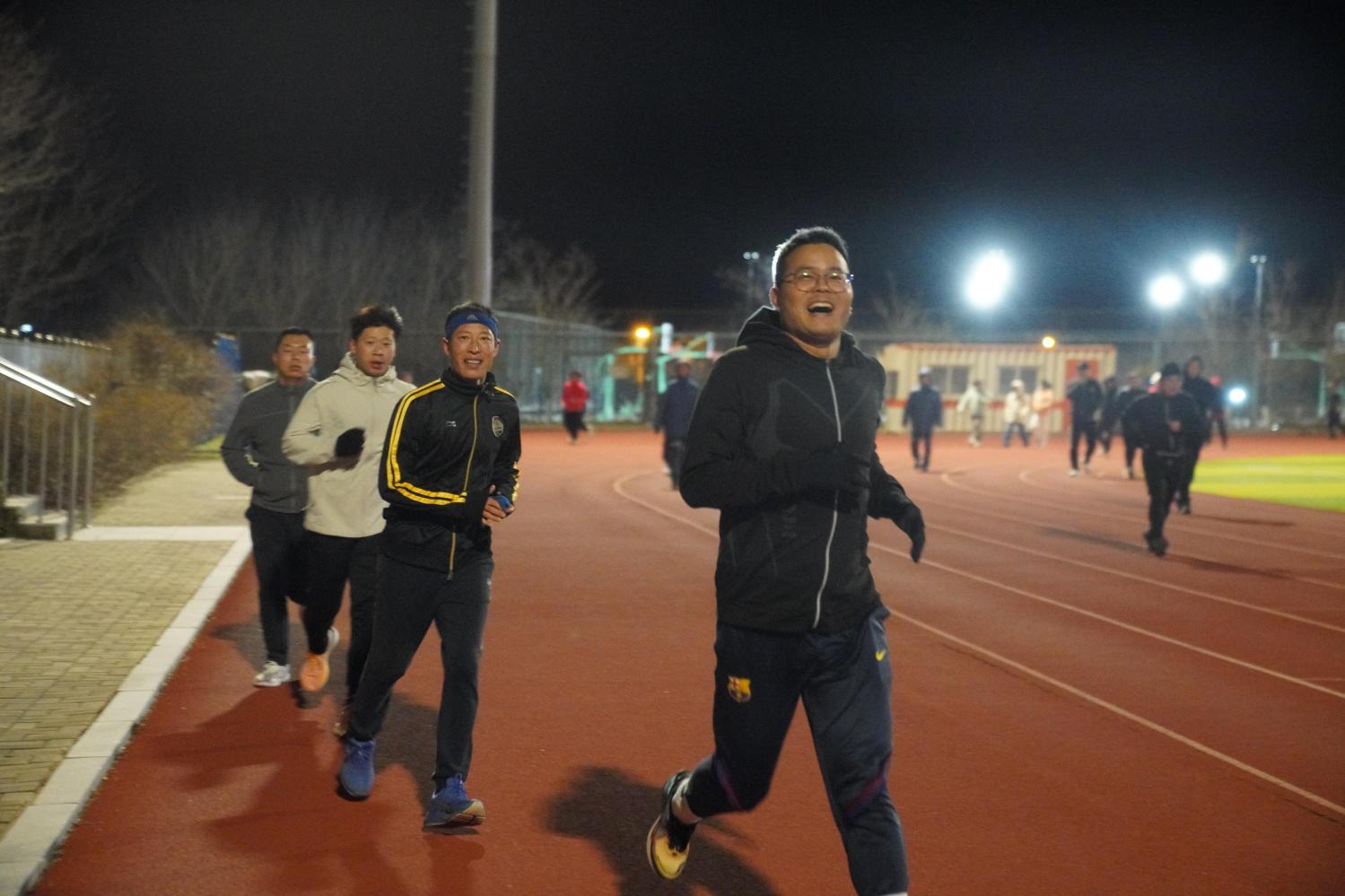 當(dāng)晚,體育場人頭攢動,氣氛熱鬧非凡。紅沿河的運動健兒們早早來到活動現(xiàn)場,精神抖擻,不畏嚴(yán)寒。他們中既有入職多年的骨干精英,也有初入核電的00后新人。公司領(lǐng)導(dǎo)張衛(wèi)東、王云霄、王雅玲同大家一起奔跑在賽道上。