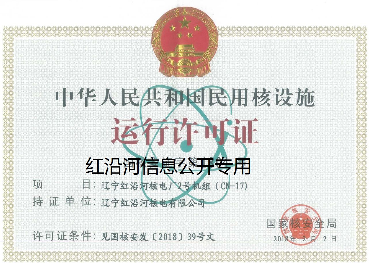 遼寧紅沿河核電廠一、二號機(jī)組運(yùn)行許可證已于2018年2月2日獲得。